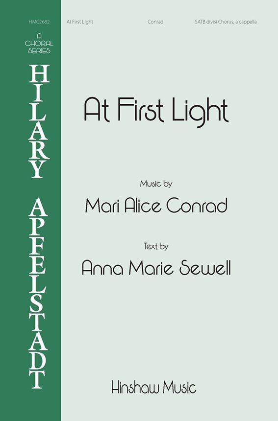At First Light explores the theme of hope through a rich homophonic texture, contrasted with a brief solo section in which individual voices punctuate a dissonant background swirling with brief melodies. Rising and falling dynamic levels express how hope can seem to come and go, but ultimately springs forth. Choirs will appreciate the expressive challenges in this score and will be richly rewarded as they navigate its beautiful phrases and thick harmonic palette.