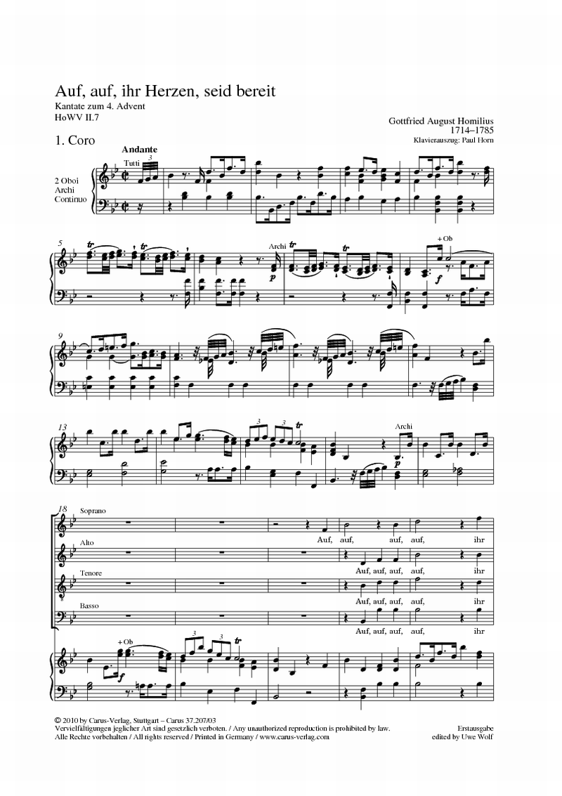 Kantate zum 1. Advent für Soli (SATB), Chor (SATB), 2 Oboen d'amore, 2 Violinen, Viola und Basso continuo