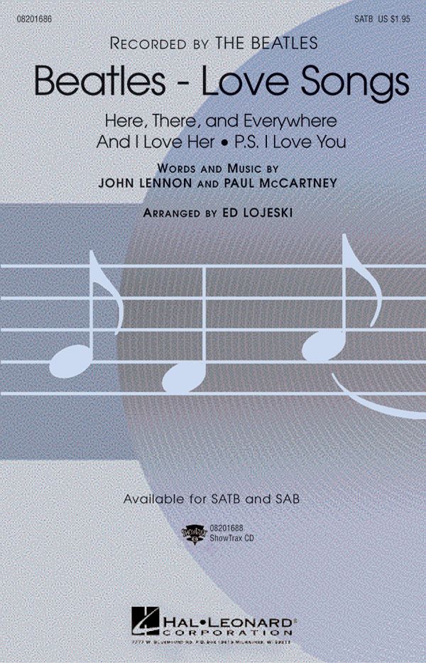 John Lennon and Paul McCartney have written some of the best love songs of the 20th Century. Three favourites are included in this medley that will have your audience humming along. Features the hits And I Love Her , Here, There And Everywhere , P.S. I Love You all arranged for SATB full mixed choir.