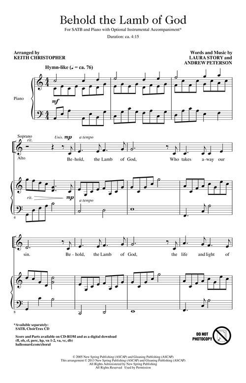 From singer-songwriters Andrew Peterson and Laura Story comes this poignant ballad that will point both choir and congregation to the cross. With lyrics that speak of both Christ's death and resurrection, this anthem is an ideal choice for Holy Week and Easter Sunday, as well as year round. Score and parts (fl, ob, cl, perc, hp, vn 1-2, va, vc, db) available on CD-ROM.