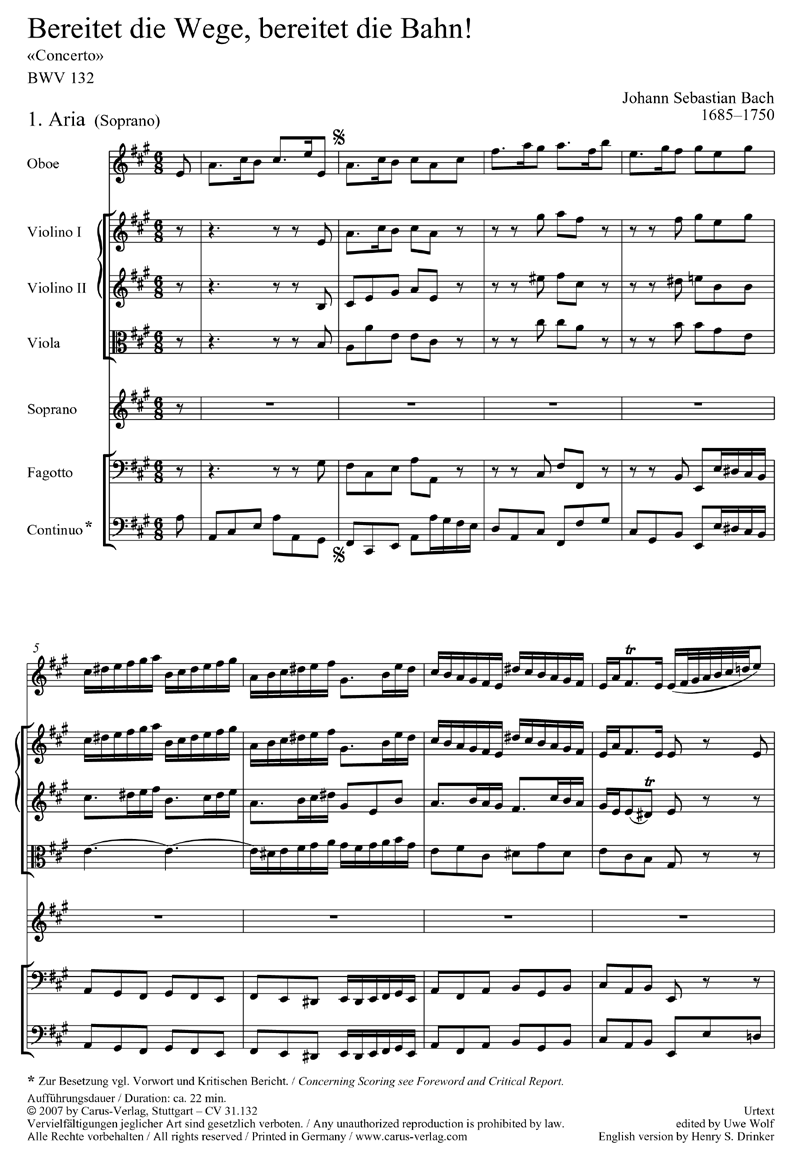 Kantate zum 4. Advent - Die Kantate gehört zu den wenigen Kantaten Bachs mit einer originalen Datierung. Salomon Francks Dichtung knüpft eng an die Evangelienlesung aus Johannes 1,19-28 an, die vom Zeugnis Johannes des Täufers handelt. Franck greift dieses Bekenntnis auf und schliesst die Forderung an, dass jeder Einzelne sich seiner Sünde bewusst werden und Christum frei bekennen müsse. - Soli SATB, Coro SATB, Ob, Fg, 2 Vl, Va, Bc