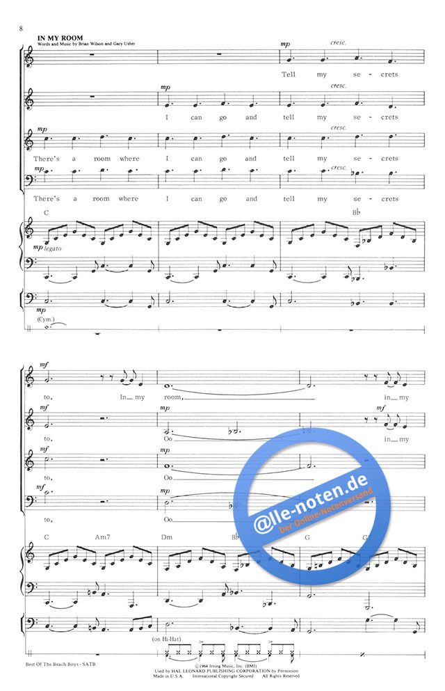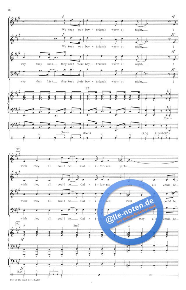 Four of the Beach Boy's greatest hit songs during their 40-year career. Piano, electric guitar, electric bass and percussion instrumental parts included.