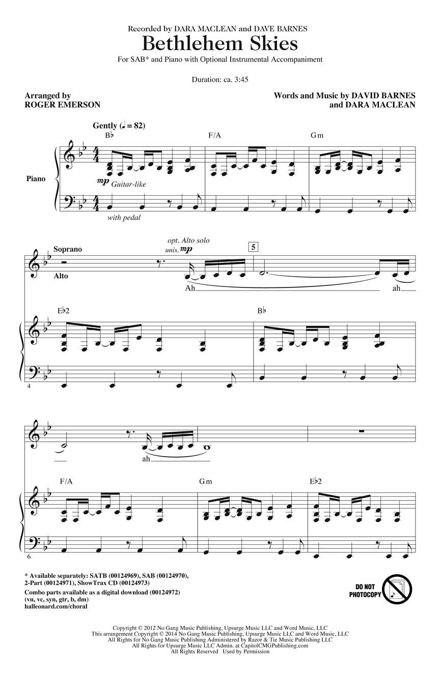 The sweet acoustic sounds of this light pop-style Christmas song by Dara Maclean and Dave Barnes will bring warmth and hope to seasonal concerts and worship services. Just a baby sleeping in a manger, all the world was waiting for you to come...under Bethlehem skies.