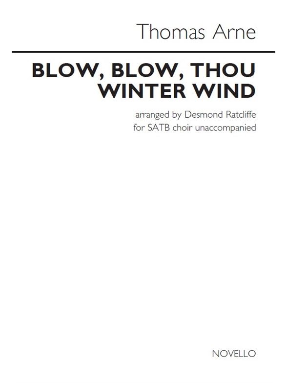 Thomas Arne's Blow, Blow, Thou Winter Wind arranged by Desmond Ratcliffe for unaccompanied SATB choir. This work is a setting of text from As You Like It, Act 2, Scene 7 by William Shakespeare. Duration: approx. 2 minutes. A Piano accompaniment is included for rehearsal purposes only.
