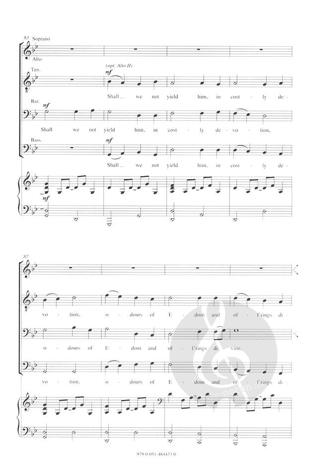 Dieses lebhafte Arrangement für gemsichten Chor und Klavier mit Solo Violine und Kontrabass (in dieser Sing- und Spielpartitur enthalten) oder einer alternativen Begleitung durch Streichorechester basiert auf dem populären amerikanischen Hymnus 'Star in the East' mit einem Text von Reginald Heber. Die vom Banjo inspirierte Klavierbegleitung sorgt für den besonderen Funken, während die Melodie mal im Unisono, mal im Kanon und mal verziert mit spiegelnden Gegenmelodien präsentiert wird, während der Refrain nach jeder Strophe an Intensität zulegt.