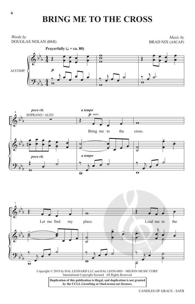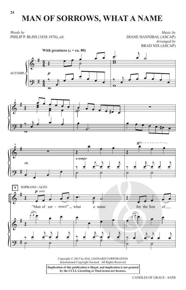 This brief choral cantata is well suited for use during Holy Week as a Tenebrae observance or as a time of reflection. A musical 'service of shadows,' 'Candles of Grace' is filled with emotive texts and deeply expressive music portraying the events of the Passion. A thoughtful orchestration adorns this chamber cantata with refined beauty and grace, giving directors an instrumental or track option for their presentations. From the delicate opening phrases to the fragile whispered ending, this work is essential for remembering and experiencing the suffering of the Lord. Songs include: 'Prelude (The Shadow Falls); Bring Me to the Cross; The Garden Call; Man of Sorrows, What a Name; Jesus, Lover of My Soul; Keep Me Near the Cross; Scenes from a Solemn Cross; Epilogue.'