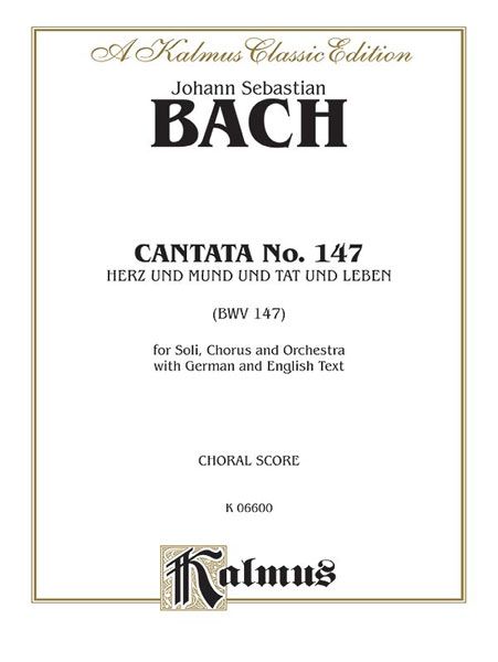 Titled 'Herz und Mund und Tat und Leben,' Bach's Cantata 147 is much better known for the 10th movement of the work, 'Jesu, Joy of Man's Desiring.' Written during his first year in Leipzig, Germany, this chorale movement is one of Bach's most enduring works. Choral score with piano accompaniment. German and English text.