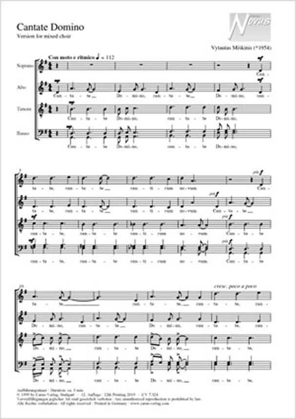 - Soli, Gemischter Chor (SATB), 2 Klarinetten, 2 Trompeten, Pauke, 2 Violinen, Viola und Basso Continuo