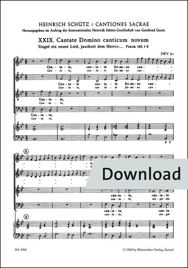 Motette (Nr. 29) aus 'Cantiones sacrae 1625'. Urtext der Neuen Schütz-Ausgabe (lateinisch/deutsch). Gemischter Chor-SATB, Basso continuo ad lib. - Singpartitur; Spielpartitur