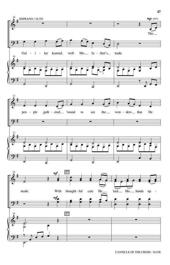 Titlesinclude: Prologue, The Song of the Cross, A Celtic Hosanna, Come to the Upper Room, The Garden of Tears, The Carpenter, A Tree Once Stood, Consolation of the Cross, Epilogue. Available separately: SATB, Listening CD, Preview Pack (Book/CD), StudioTrax CD (Accompaniment only), RehearsalTrax CDs (part-predominant, reproducible), 10-Pack Listening CDs, Digital Resource Kit (includes PowerPoint, devotionals, children's materials, poster, program &flyers), Chamber Orchestration (Score & Parts for Soprano Recorder/Penny Whistle, Alto Recorder, Oboe/English Horn, Clarinet 1&2, Bassoon, Horn 1&2, Trumpet 1-3, Trombone 1&2, Tuba, Timpani, Percussion 1&2, Harp, Piano, Violin1&2, Viola, Cello, Double Bass) and Chamber Orchestration CD-ROM. Duration: ca. 30:00.