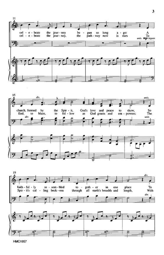 This piece is energized by a consistent rhythmic drive and is perfect for celebrating the past, present, and future, excellent for reformation Sunday or any celebration.