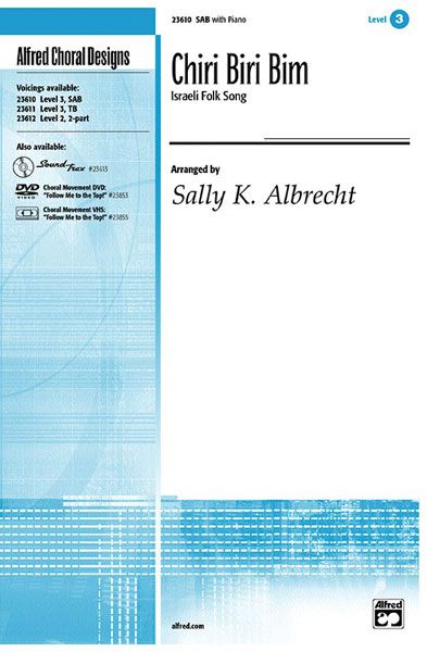 Energy and handclaps abound in this joyful arrangement of an Israeli folk song. The fun-to-say Hebrew words are translated in the second verse as opposing sections of the choir play a call-and-response game, 'When I say l'cha dodi, then you answer chiri biri bim. ' Perfect for 2-part choirs and equally appropriate for SAB and men's voices. An optional SoundTrax CD adds ethnic authenticity with its jaunty clarinet duet and a dance-like tambourine. Staging is featured on 'Follow Me to the Top! ' DVD #23853, VHS #23855.