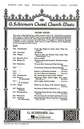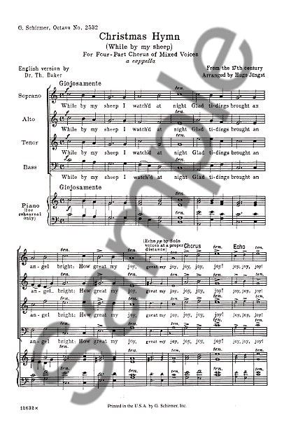 While By My Sheep is a 17th Century hymn, which has been arranged for SATB chorus a cappella by Hugo Jungst.