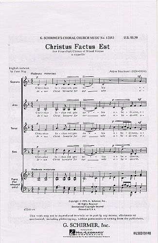 Motet for SATB Choir A Cappella. This was Bruckner's third and best-known setting of this text.