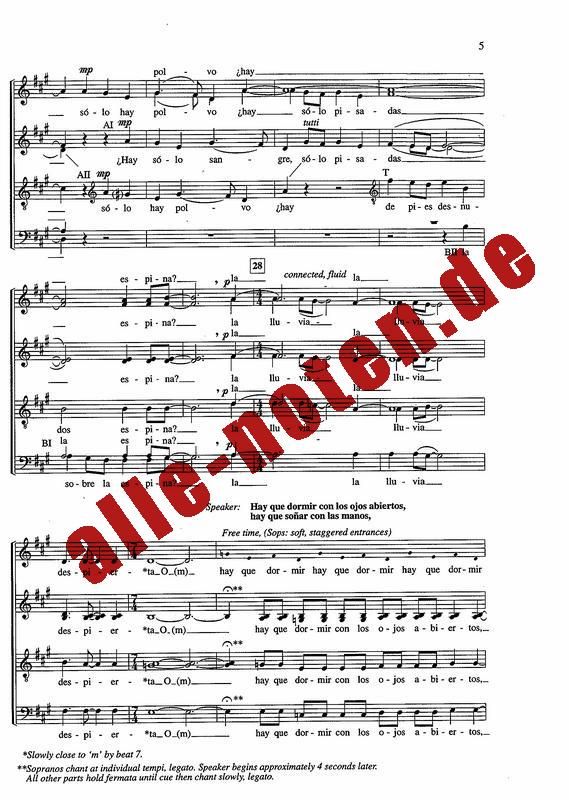 Die kraftvolle Verschmelzung von Octavio Paz' Worten und Eric Whitacres musikalischer Bildsprache hat dieses Werk zu einem Favoriten bei guten High-School-Chören und darüber hinaus in den USA und im Ausland gemacht. Spanischer Text. Verfügbar: SATB.