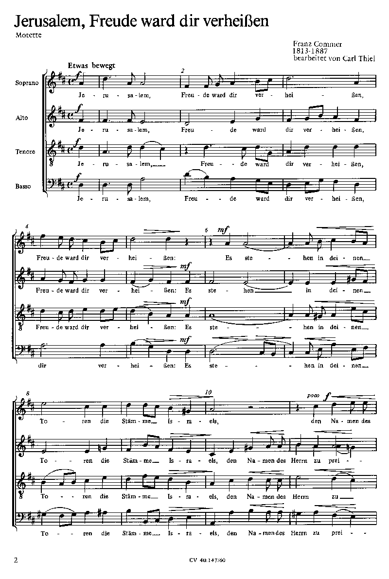 Commer: Jerusalem; Hauptmann: Die Nacht ist gekommen