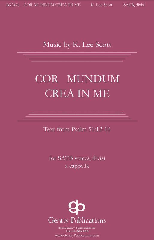K. Lee Scott has taken a Latin setting of Psalm 51, Create in me a clean heart, and laced it with a luscious 21st century harmonies. Gentle and yet stirring, this setting is excellent for college or community choirs, appropriate for concert or worship. Medium to difficult.
