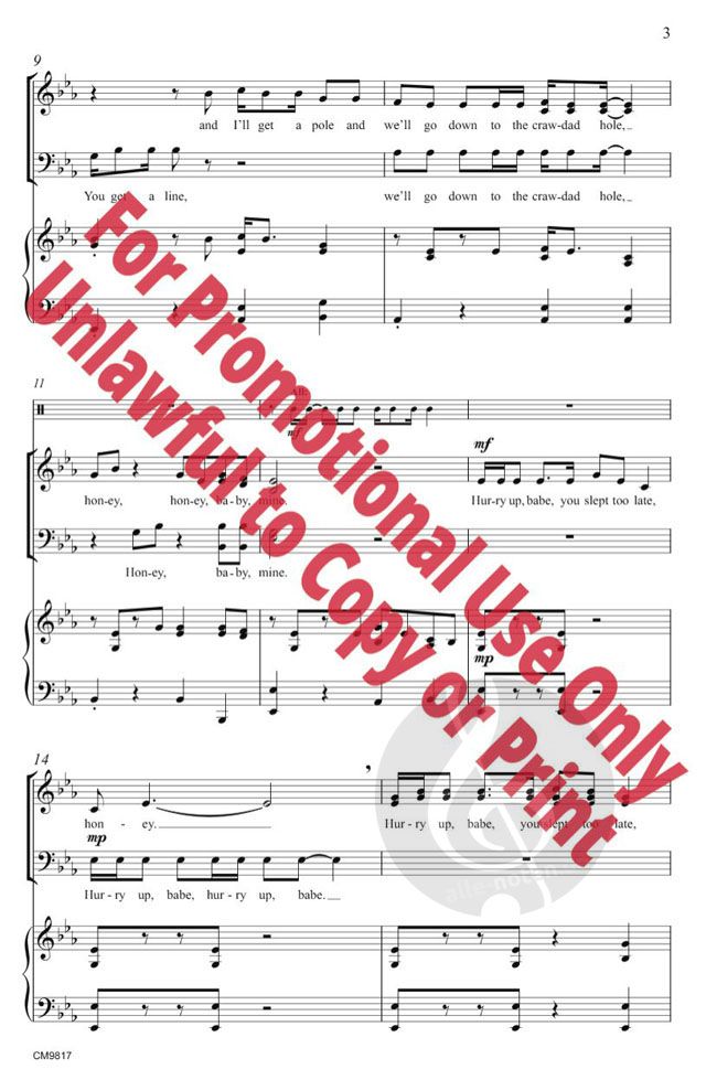 Ihre Sängerinnen und Sänger werden es lieben, sich in Courtney's lustige, fröhliche Wiedergabe dieses beliebten Stücks Americana zu stürzen, das ein Wechselspiel zwischen den Stimmen und einnehmendes Händeklatschen enthält. Auch erhältlich für SSA (CM9818), SAB (CM9784) und 2-stimmigen Diskant (BL1406).