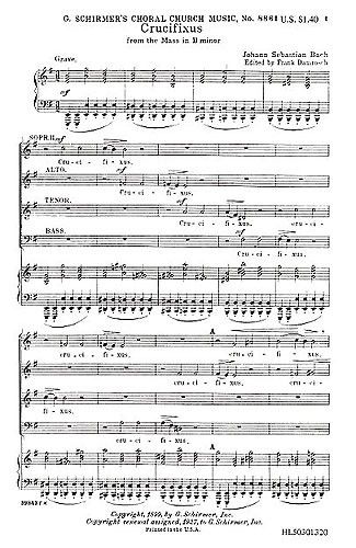 The G. Schirmer Choral Church Music series presents J. S. Bach's Crucifixus from the Mass In B Minor. Scored for SATB Chorus and Organ or Piano accompaniment.