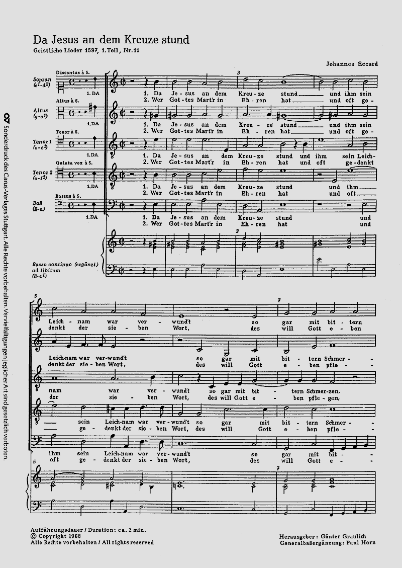 - Opt. Besetzung Gemischter Chor (SATTB) und Basso Continuo
