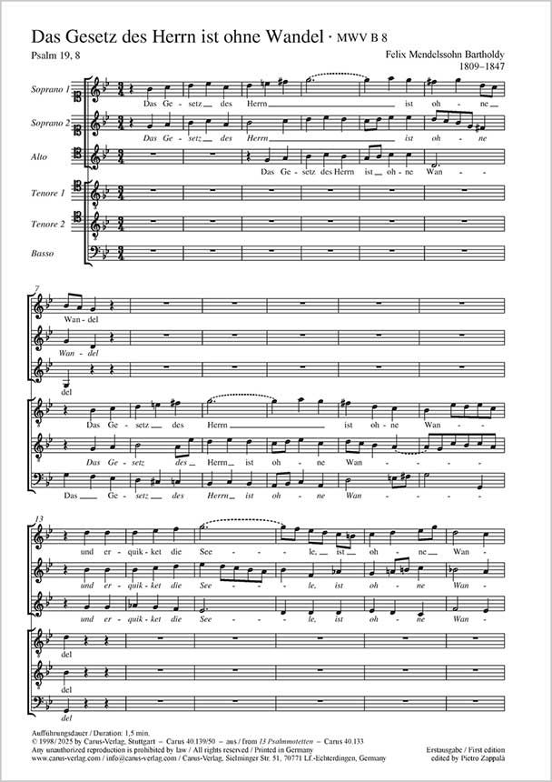 Das Gesetz des Herrn ist ohne Wandel MWV B 8