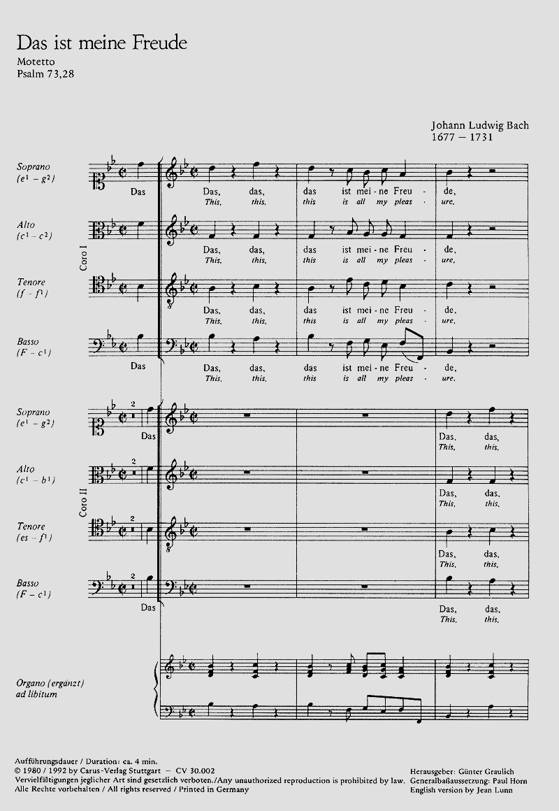 - Besetzung 2 gemischte Chöre (SATB) und Basso Continuo