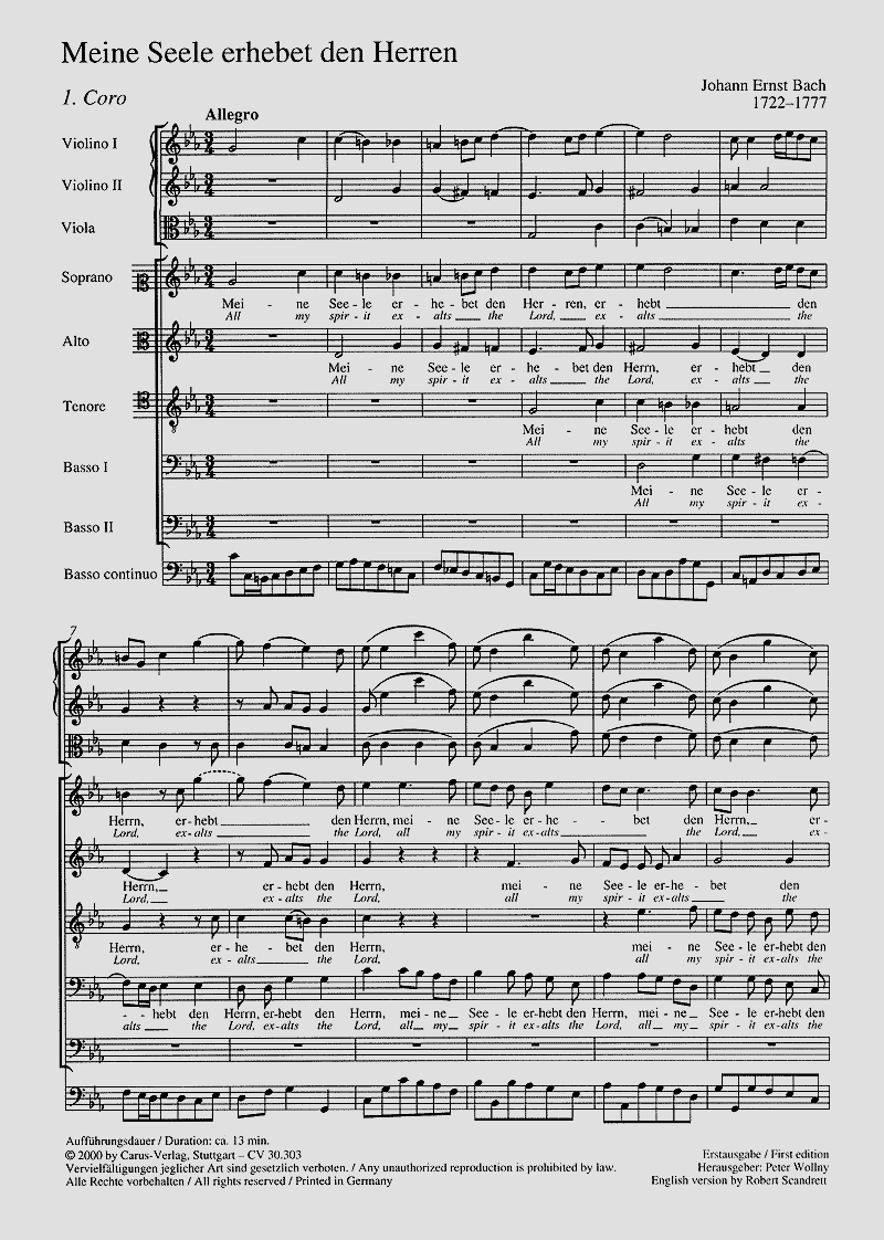 Soli SATB, Coro SATBB, 2 Vl, Va, Bc