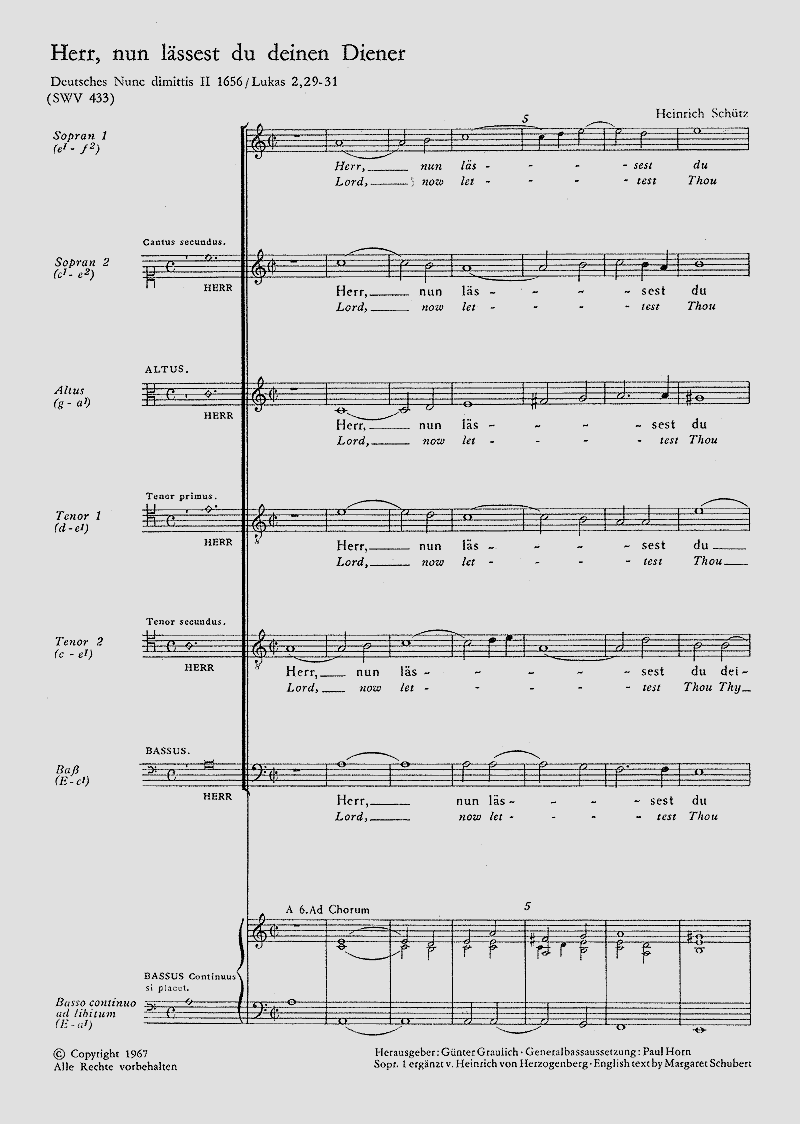 Deutsches Nunc dimittis II - Fav SSATTB, [Cb, Org] - Partitur (ohne Umschlag)