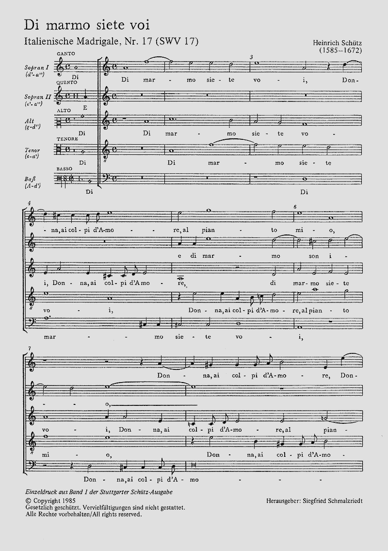 Somiglianza tra l'Amante e l'Amata. Extrait de : Madrigaux italiens