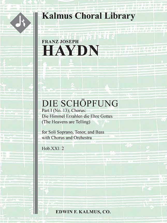 Als Franz Josef Haydn (1732-1809) während seines Aufenthalts in England Aufführungen von Händels Chorwerken besuchte, beschloss er, sein eigenes großes Oratorium zu schreiben. Er begann 1796 mit der Arbeit an DIE SCHÖPFUNG, Hob.XXI: 2, und stützte sich dabei auf ein Libretto von Gottfried van Swieten, das verschiedene Texte aus Miltons Paradise Lost, der Genesis und den Psalmen enthält. In dem Werk schildert Haydn das Schöpfungsgeschehen mit Händel'schen Chören und farbenfroher Wortmalerei. Die erste öffentliche Aufführung fand am 19. März 1799 im alten Burgtheater in Wien statt. Der Refrain von Teil I (Nr. 13), DIE HIMMEL ERZAHLEN DIE EHRE GOTTES, ist einer der bekanntesten und meistgespielten Ausschnitte des Werks. Besetzung: 2.2.2.2+CBsn: 2.2.3.0: Timp: Str (4.4.3.3.3 im Satz): Mx Chor.