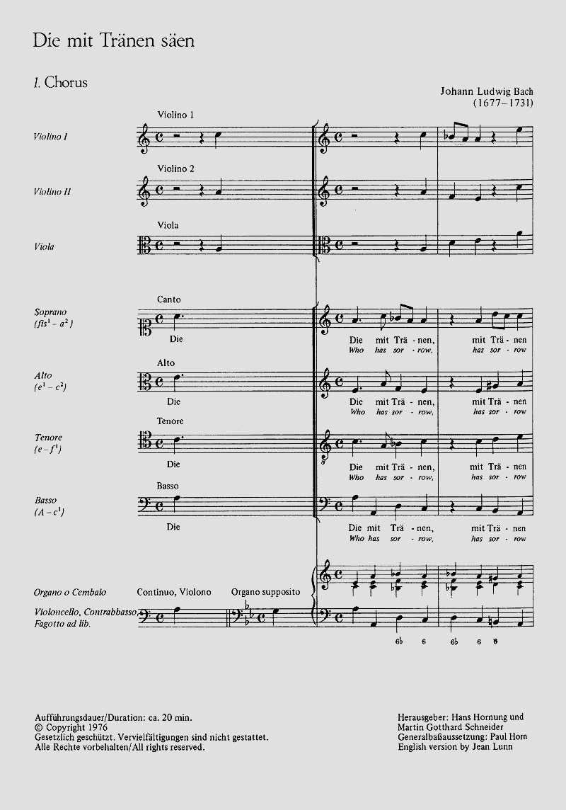 Soli SATB, Coro SATB, 2 Vl, Va, Bc