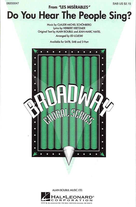 Do You Hear The People Sing? from Schonberg's Les Miserables, arranged for SAB choir and Piano with optional instrumental accompaniment by Ed Lojeski.