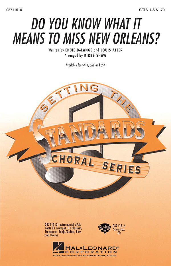 Recorded by greats such as Louis Armstrong, Billie Holiday and Frank Sinatra, this bluesy standard is a great tribute to a great city! Ideal for a tribute concert! Available for SATB, SAB and SSA. Instrumental ePak has parts Bb Trumpet, Bb Clarinet, Trombone, Banjo/Guitar, Bass and Drums. ShowTrax CD also available. Performance Time: Approx. 3:55