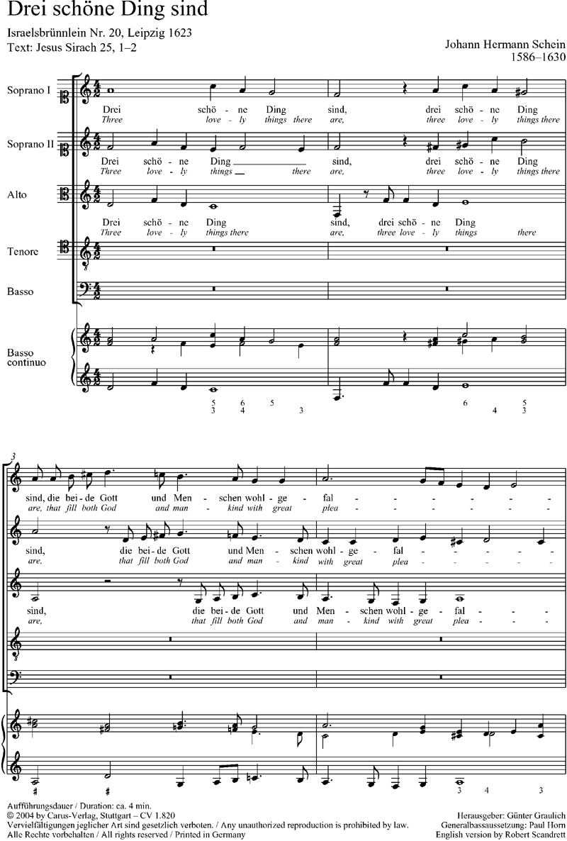 - Gemischter Chor (SSATTB) und Basso Continuo