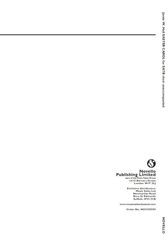 This setting of a 17th-century Easter carol for Unaccompanied SATB Choir is by Jamie W. Hall.