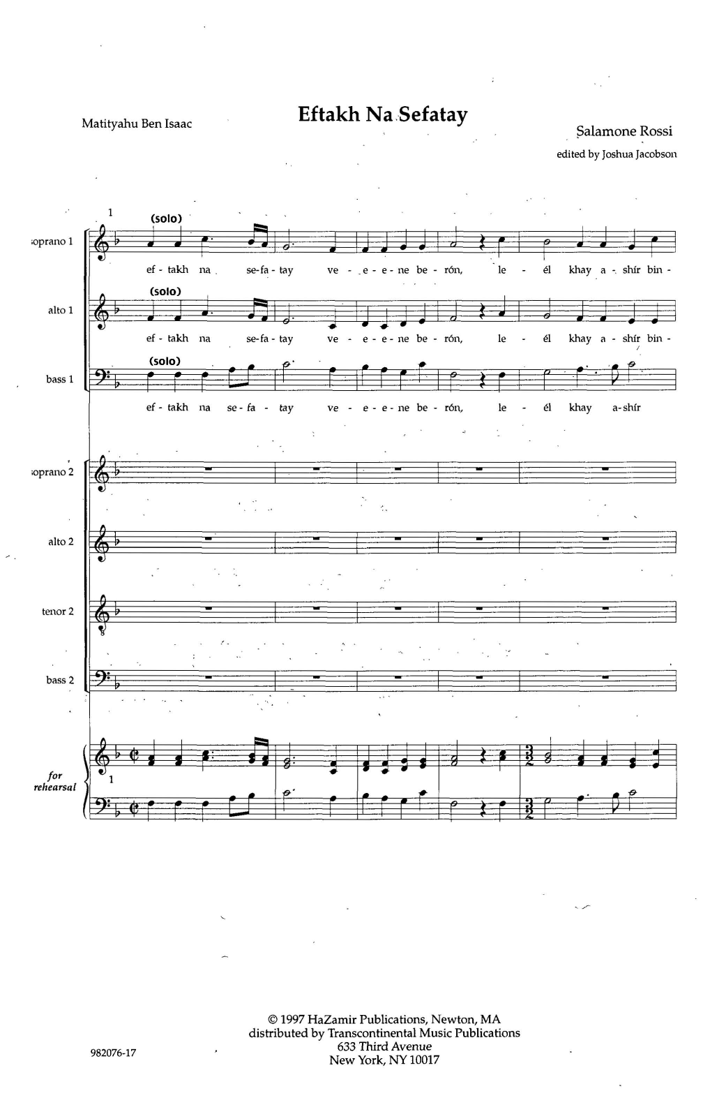 Text by Mattiyahu ben Isaac. For SAB/SATB.