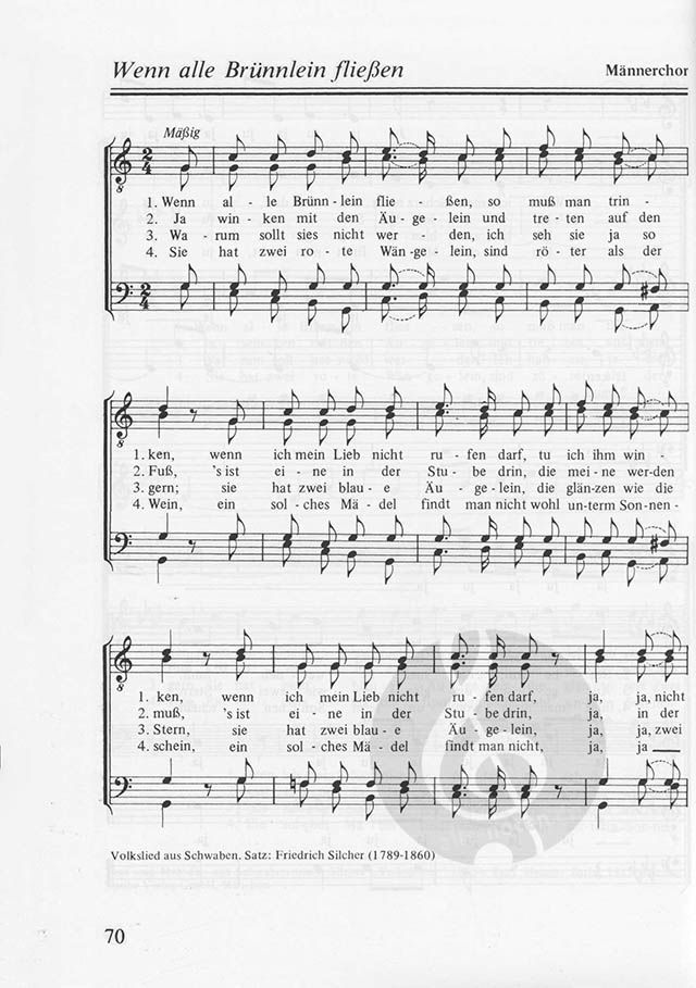'Horch, was kommt von draussen rein', 'Bruder Jakob, schläfst du noch', 'Veronika, der Lenz ist', 'Ännchen von Tharau', 'Die helle Sonn leucht jetzt herfür' und 'Komm, Herr, segne uns' - die musikalische Mischung ist Siegfried Bauer nahezu perfekt gelungen: Ob Evergreens, in- und ausländische Volkslieder, Kanons, Folklore, geistliche Lieder oder die klassischen 'Gassenhauer' - hier findet jeder Chor seine Lieblingsmelodien in (meist) vierstimmigen gemischten Sätzen. Chorsätze, die sich für das kleine Konzert ebenso eignen wie für das Singen in geselliger Runde. Kurz: Ein Buch, das in keinem Chor fehlen darf!!!!!!!!