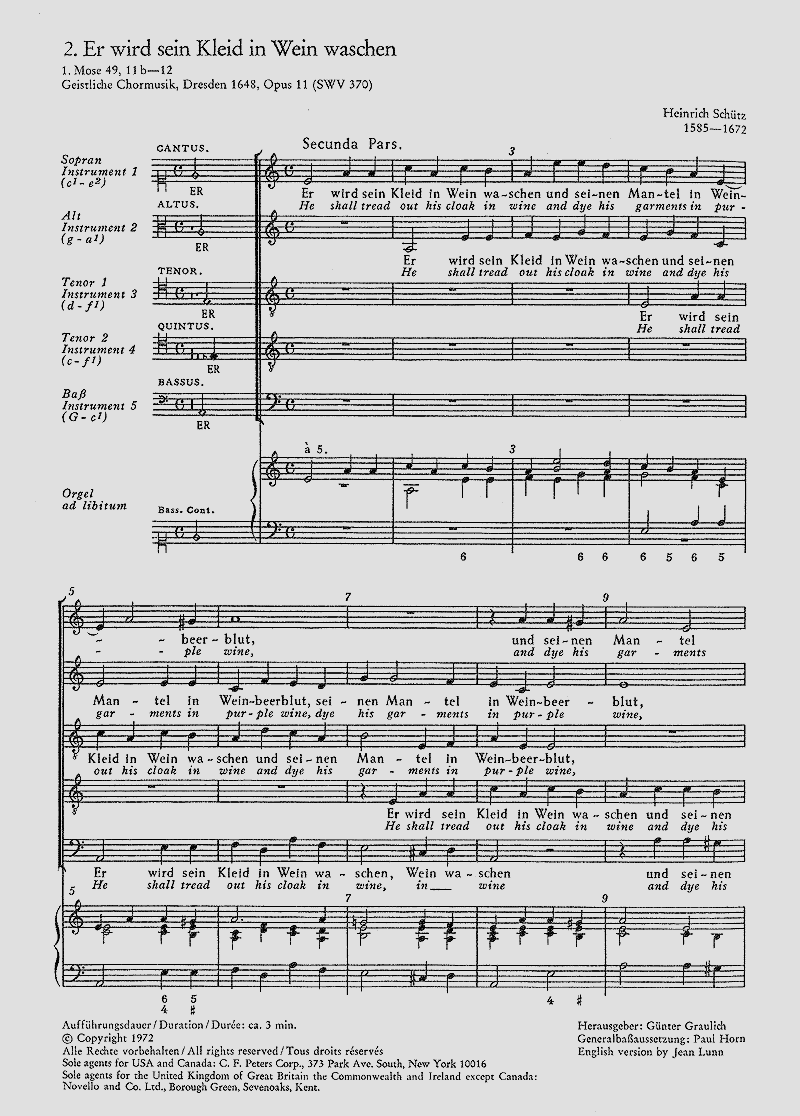 - Besetzung Gemischter Chor (SATTB) und Basso Continuo