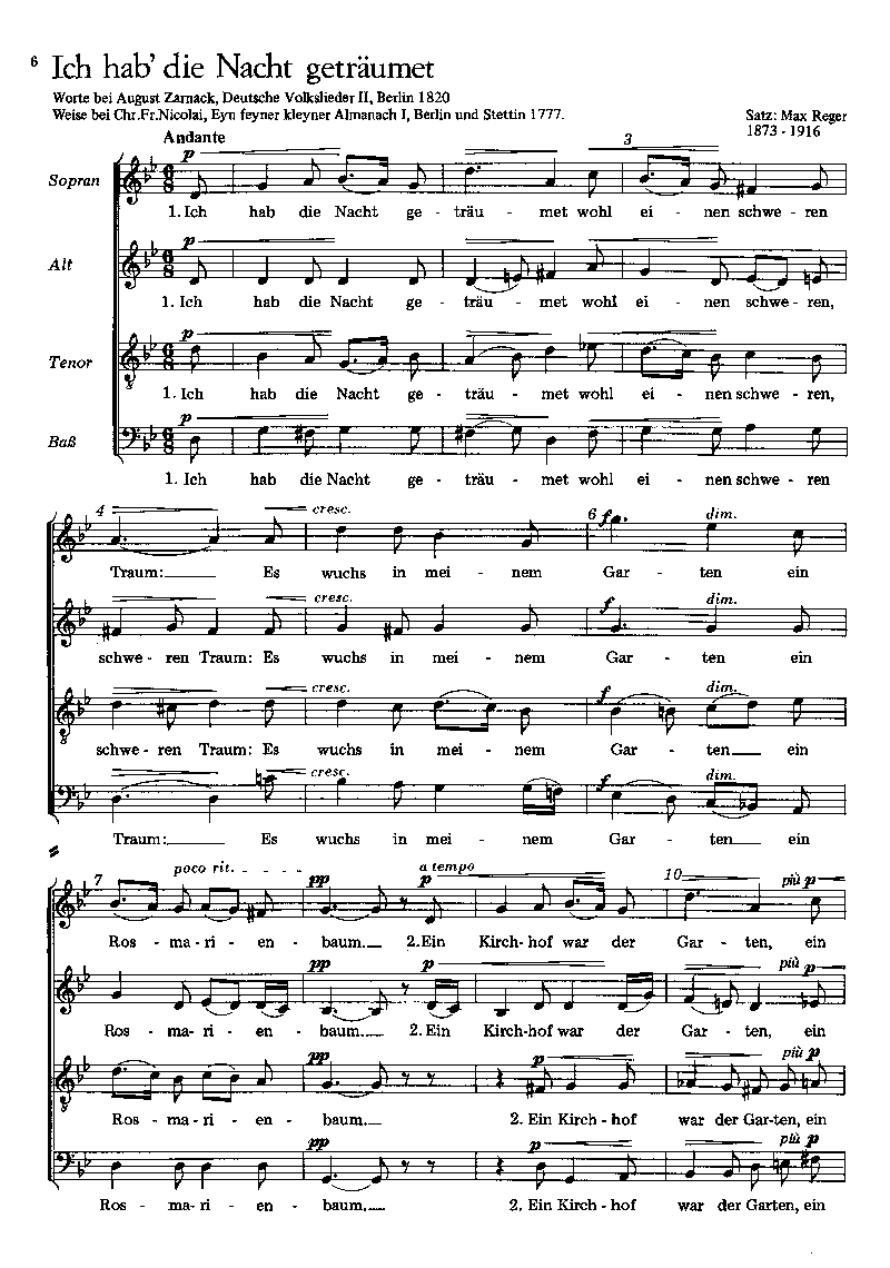 Es waren zwei Königskinder; Ich hab' die Nacht geträumet