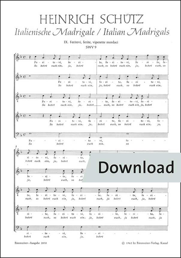 Italienisches Madrigal Nr. 9 (italienisch/deutsch). Urtext der Neuen Schütz-Ausgabe. Gemischter Chor-SSATB - Singpartitur; Urtextausgabe