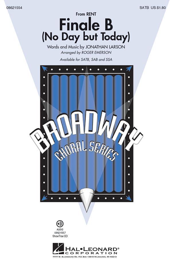 Winning the Pulitzer Prize and four Tony Awards, the late Jonathan Larson's musical Rent changed the course of Broadway. Finale B (No Day but Today) is a perfect graduation and concert closer, with its rock anthem style harmonies and emotion-filled lyrics. Available separately: SATB, SAB, SSA, ShowTrax CD. Duration: ca. 2:15.