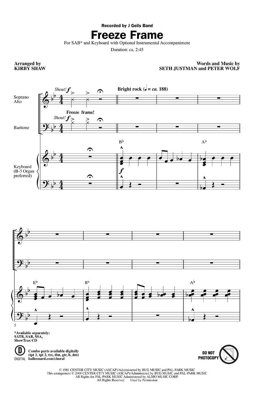 Flashback to the 80s! This 1982 pop hit by the J. Geils Band is a rock 'n' roll icon that makes a supercharged show choir powerhouse! Unstoppable! Available separately: SATB, SAB, SSA, ShowTrax CD. Combo parts available digitally (tpt 1, tpt 2, tsx, tbn, gtr, b, dm). Duration: ca. 2:45.