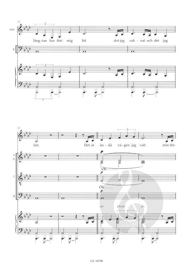 Gabriellas Lied aus dem Film 'Wie im Himmel' für Solo-Gesang im Violinschlüssel und gemischten Chor. In schwedischer Sprache.