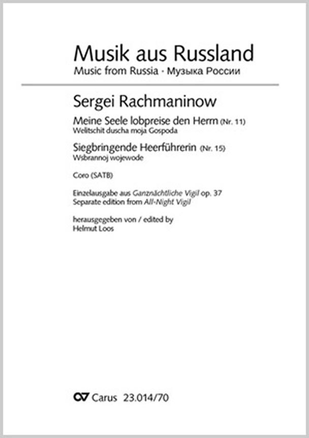 Sergej Rachmaninows Ganznächtliche Vigil ist sein letzter Beitrag zur russisch-orthodoxen Kirchenmusik. Die liturgische Vorlage ist der Gottesdienst am Vorabend kirchlicher Feiertage und besteht aus einer Abfolge von Gebeten, Lesungen und Gesängen. Rachmaninow gelang es, in seiner Komposition für Chor a cappella originale Kirchengesänge mit Neuschöpfungen zu einer Einheit zu verschmelzen und eine solche emotionale Tiefe zu erreichen, dass der Vesper bei ihrer Uraufführung im Jahre 1915 ein triumphaler Erfolg beschieden war. Die vorliegende Neuausgabe unterlegt den Noten den originalen kirchenslawischen Text sowohl in der Duden-Transkription als auch in einer singbaren deutschen Übersetzung und gibt Aussprachehilfen für den kirchenslawischen Text.