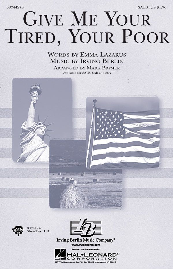 Give me your tired, your poor, your huddled masses yearning to breathe free. These moving words penned by Emma Lazarus are set in stone at the bottom of the Statue of Liberty as a reminder that all are welcome here. Irving Berlin set these words to music in 1949 and the piece has become a classic in patriotic repertoire. Performance time: Approx. 2:15. Available for SATB, SAB, SSA and ShowTrax CD.