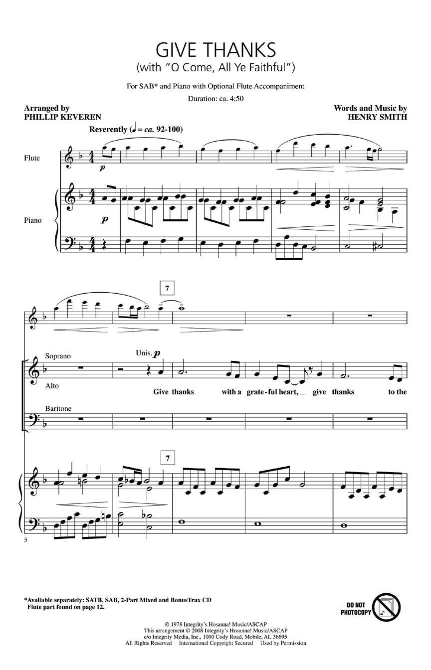Now a staple in church literature, Henry Smith's praise song is effectively paired with the perennial O Come, Let Us Adore Him in this warm and worshipful arrangement by Phillip Keveren. The optional flute skillfully weaves a recurring motif throughout the piece, tying up this package like a beautiful bow! Duration: 4:50. Available separately: SATB, SAB, 2-Part Mixed, BonusTrax CD.