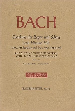 Kantate zum Sonntag Sexagesimae (Leipziger Fassung) (deutsch/englisch) nach der Neuen Bach-Ausgabe. Sopran solo, Tenor solo, Bass solo, Gemischter Chor-SATB, Alt-Blockflöte in f,g (2), Fagott, Viola (4), Violoncello, Kontrabass, Basso continuo/ Orgel