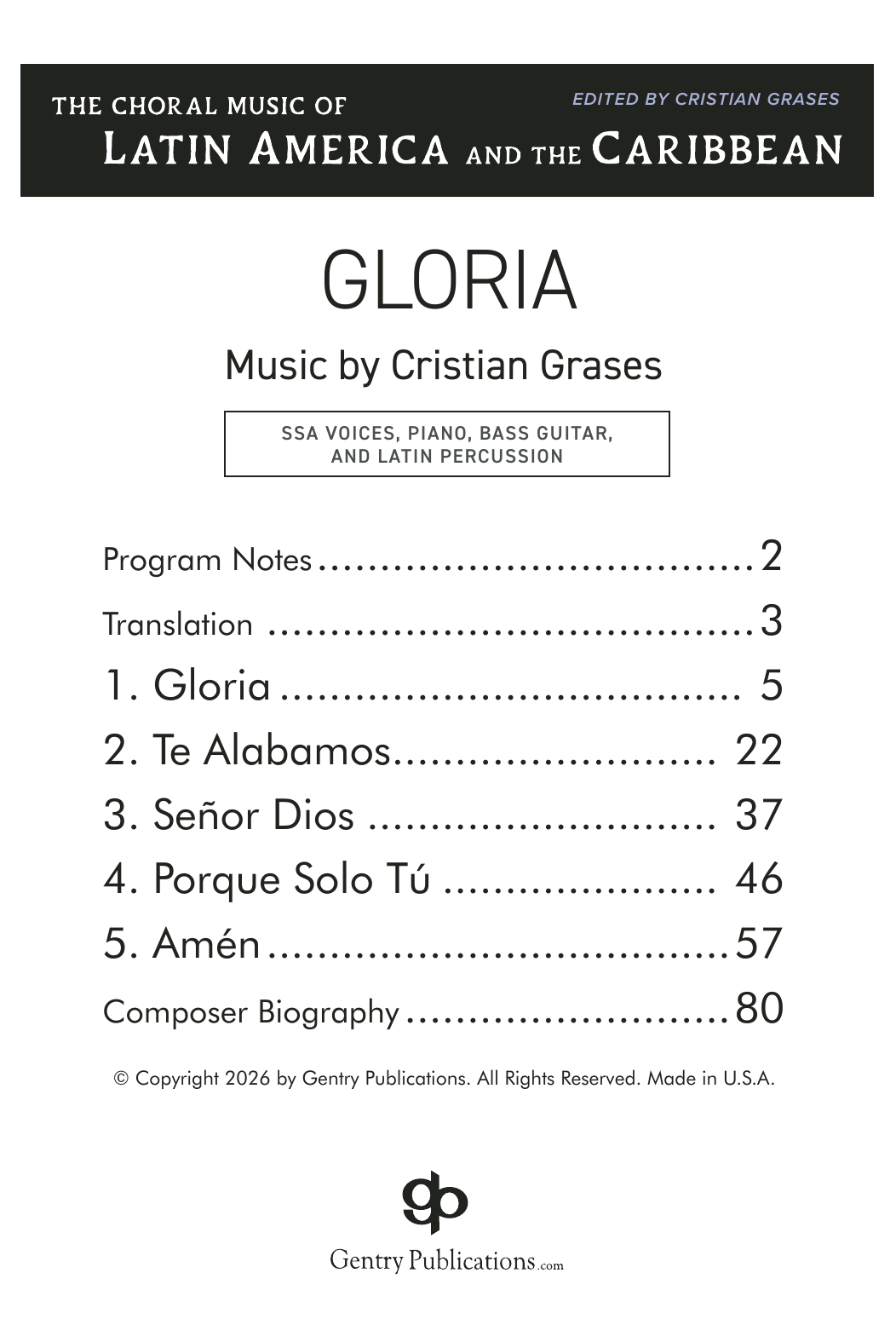 Cristian Grases' Gloria ist ein fantastisches und aufregendes fünfsätziges Chorwerk, das sich perfekt für mittelschwere bis fortgeschrittene Chorensembles eignet, die ein kulturell reiches und rhythmisch ansprechendes Repertoire suchen. Indem der traditionelle Text des Gloria auf Spanisch vertont wird, erkundet jeder Satz einen bestimmten lateinamerikanischen Volksrhythmus und bietet eine einzigartige musikalische Reise. Der erste Satz, Gloria, sprüht vor Freude durch den lebhaften kolumbianischen Cumbia, wobei der Chor indigene Flöten und eine festliche Atmosphäre heraufbeschwört. Te Alabamos folgt mit der energiegeladenen puerto-ricanischen Bomba, die Lob und Dankbarkeit verkörpert. Das Stück schließt mit Amén, einem jubelnden kubanischen Son mit Congas, Bongos und einer Klavierbegleitung, die dieses aufregende Werk zu einem triumphalen Abschluss bringt. Grases' Gloria ist ein Fest der Kultur, des Rhythmus und des Glaubens, das sowohl die Interpreten als auch das Publikum begeistern wird.