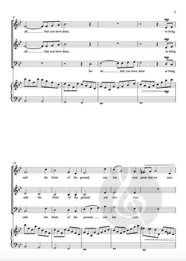 Composed for Creationtide; the season of harvest (UK) or thanksgiving (USA), God of all creation is characterised by its flowing accompaniment and lyrical melody. There’s some unison singing, some passages where the melodic phrases are shared between the voice-parts, and use of sequential repetition to extend the phrase.The piece is scored for Sopranos, Altos, Unison Lower Voices, and an accompaniment which is equally successful whether played on piano or one-manual organ. The composer also wrote the lyrics which are inspired by prayers from the Book of Common Prayer. Reviews:"Olivia Sparkhall's anthem allows the music to be propelled along by keyboard quaver figurations - the accompaniment is marked 'piano or organ' but has the feel of being conceived for piano. The Book of Common Prayer texts, covering the fruits of the harvest and the fruits of the Spirit have been arranged to form both a hymn of thanksgiving and a prayer to use God's gifts well. The vocal lines are well written, singable and with more musical interest than in many easy anthems." - James L. Montgomery, CMQ Magazine