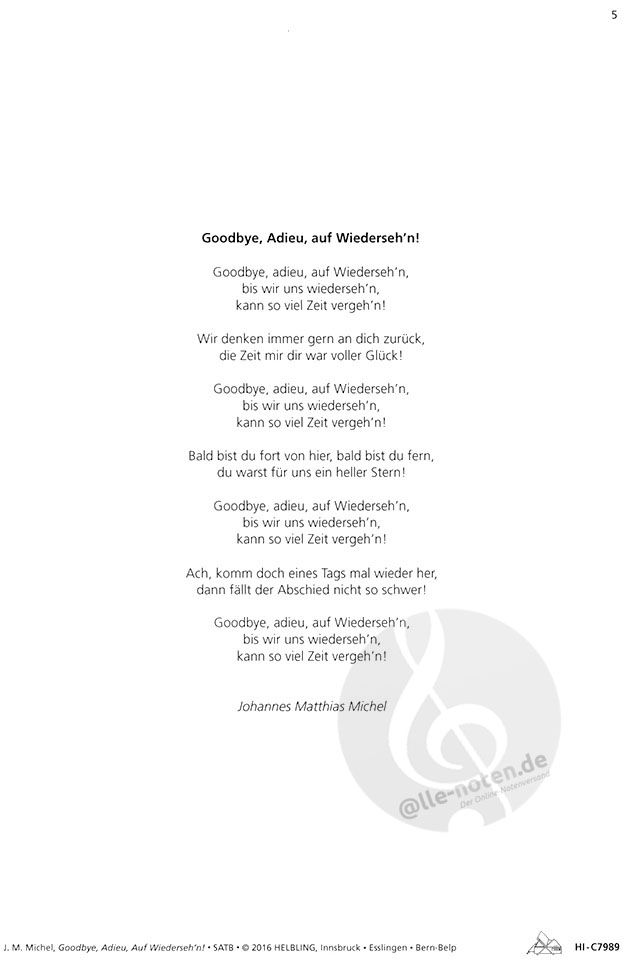 In diesem bewegenden Abschiedslied mit optionaler Klavierbegleitung von Johannes Matthias Michel klingen die 1930er-Jahre wieder. Ob als stimmungsvolles Präsent zum Schluss oder als charmanter Rausschmeißer - dieses Chorstück ist ideal, um einen gelungenen Abend ausklingen zu lassen: 'Die Zeit mit dir war voller Glück!'